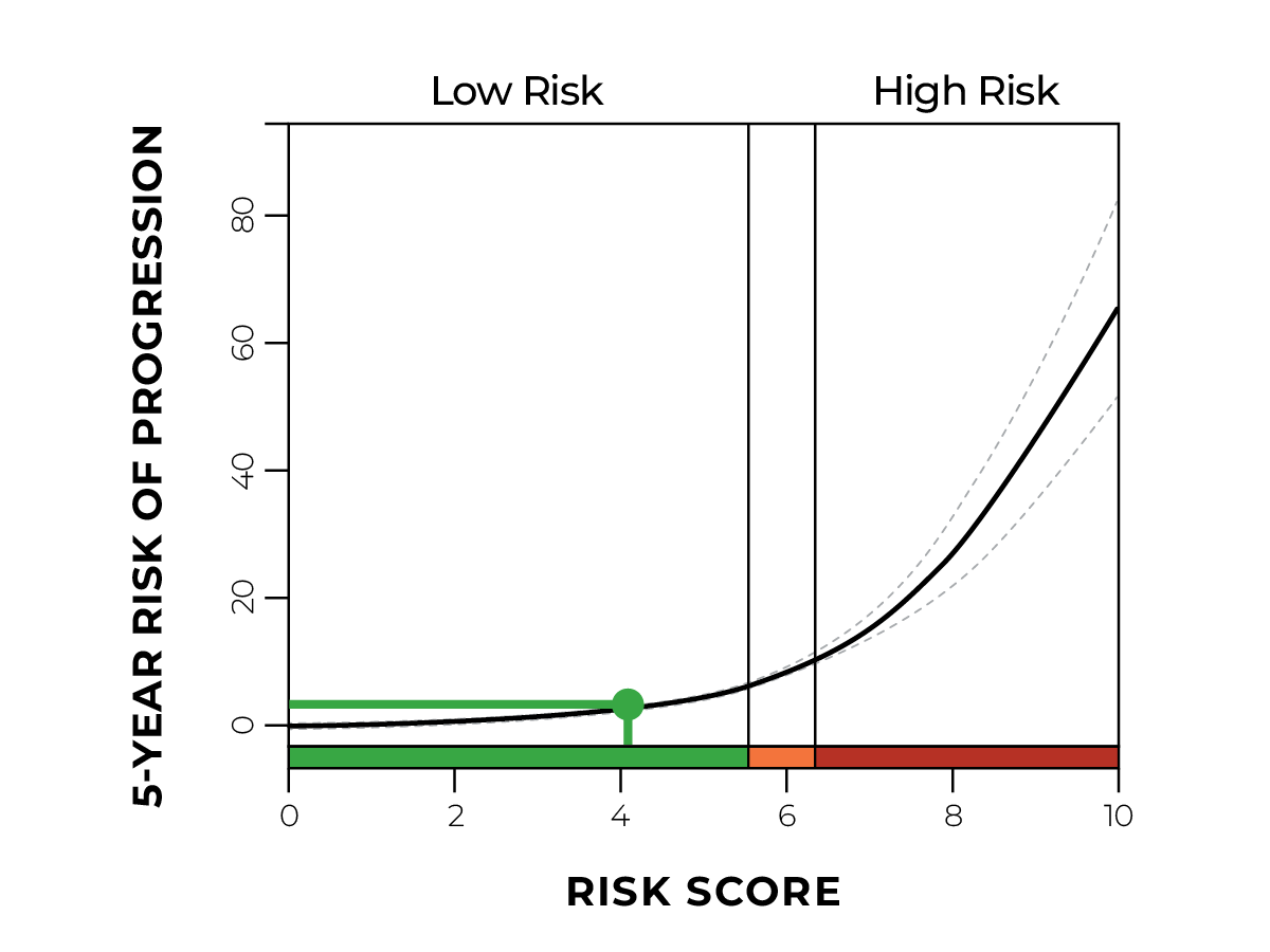 While this patient had been referred for consideration to EET, the decision to proceed required careful consideration. Given the patient’s underlying portal hypertension, EET carries elevated risks, which needed to be weighed against the patient’s individual risk of progression to high-grade dysplasia or cancer. The resulting TissueCypher results showed a low-risk TissueCypher classification and 3 percent risk of progression, which was very reassuring to Dr. Yepuri and his patient. The results allowed a confident recommendation to downstage to 3-year surveillance with TissueCypher testing at every other interval.
