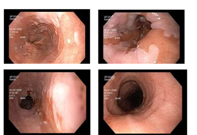 From top left to bottom right - Lower third of the esophagus - Barrett’s esophagus, lower third of the esophagus - Barrett’s esophagus, lower third of the esophagus - Barrett’s esophagus, middle third of the esophagus