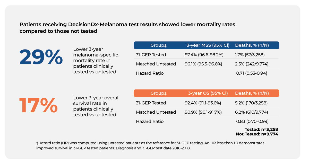 Bailey CN, Martin BJ, Petkov VI, et al. 31-gene expression profile testing in cutaneous melanoma and survival