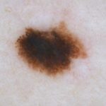 A woman in her 30's presents to her dermatologist for evaluation of a pigmented lesion on her inner thigh.